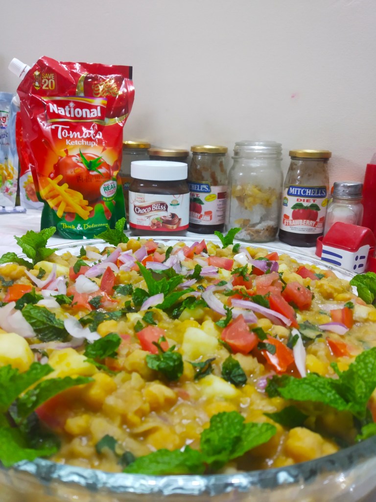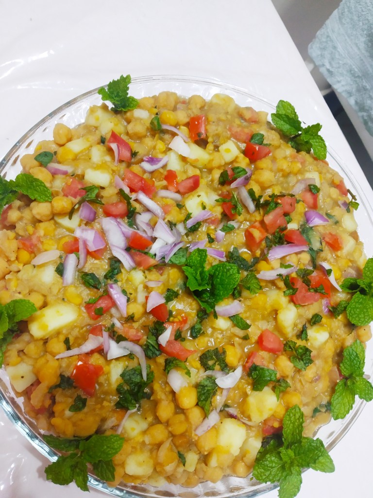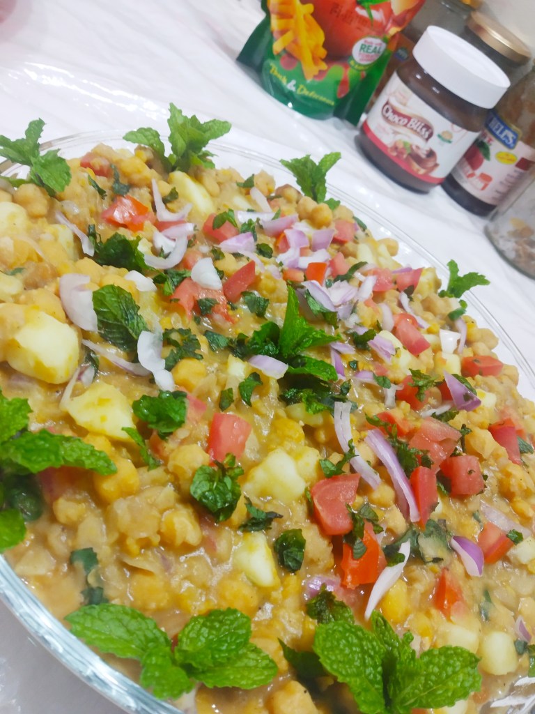 This dish which is full of nutrition’s as it contains potatoes, tomatoes, chickpeas, coriander, red and green chilies. Chickpeas are rich source of vitamins, minerals and fiber. It may offer a variety of health benefits, such as improving digestion, aiding weight management and reducing the risk of several diseases. Additionally, chickpeas are high in protein and make an excellent replacement for meat in vegetarian and vegan diets.